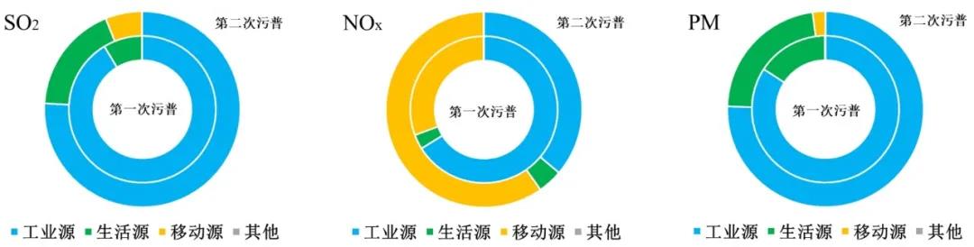 工业源对空气污染物排放和温室气体排放均有较大贡献,虽近年来工业源排放得到较为有效的控制,但其排放占比仍然较重(图1)。