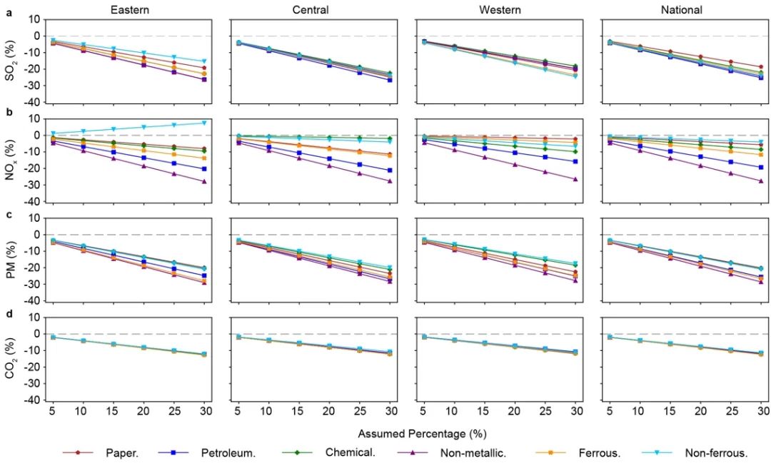目前针对工业部门实施的大部分CO2排放控制政策及大气污染防治政策均会带来一定协同减排效益。为进一步提高治理政策的协同效益,未来需从宏观和微观个体企业层面综合评估相关政策,识别不协同路径,加速落实协同措施,实现工业部门空气污染物和温室气体持续大幅减排,助力实现碳中和、美丽中国建设等目标。