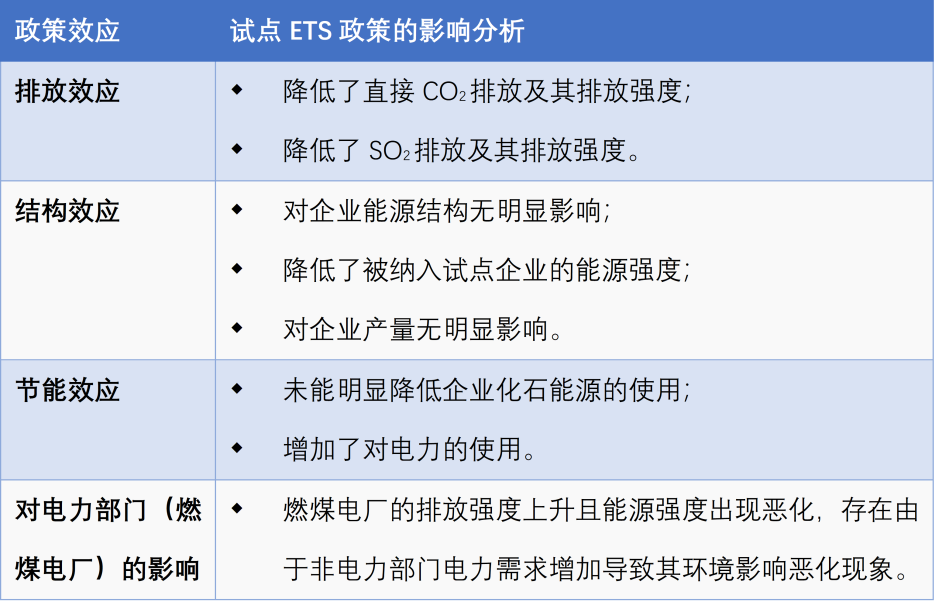 研究结果表明,试点ETS政策可带来空气质量改善的协同效益,但可能导致电力部门的环境影响恶化。研究建议从两方面解决这一问题:一是首先从电力部门推广ETS;二是加速推广非化石能源发电,尤其是可再生能源发电。